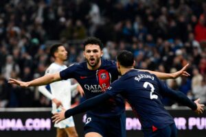 Paris Saint-Germain overcame a controversial first-half sending-off to win 2-0 away to bitter rivals Marseille in Ligue 1 on Sunday Paris Holy person Germain defeated